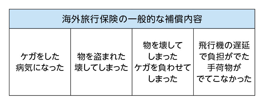 • 海外旅行をする際には、保険の補償内容をよく確認し契約するようにしましょう
